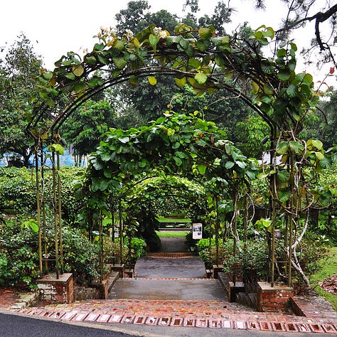 And we wandered… through the long and looping pathways, in and through the orchid garden, and around the pond (hoping to see the never-appearing otters). It was only when we were heading towards the exit that we spotted something truly unexpected, subversive even. A mark of courage past.